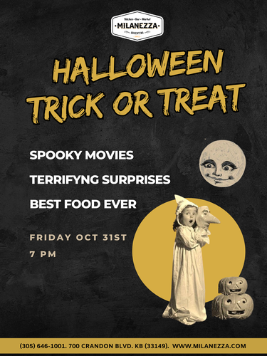 Enjoy thrilling Halloween movies, delicious treats, happy hour specials, and plenty of festive surprises throughout the evening.