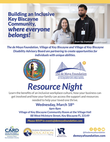 The de Moya Foundation, Village of Key Biscayne, and the Village of Key Biscayne Disability Advisory Board are partnering to create meaningful opportunities for individuals with unique abilities.