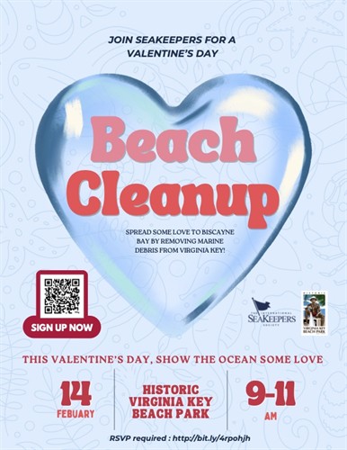 This Valentine's Day, give your love where it truly matters - to our ocean. Join SeaKeepers at Historic Virginia Key Beach Park for a coastal cleanup on Saturday, February 14, 2026 from 9 AM - 11 AM! Help collect trash from the park, shoreline and shallow water to keep marine debris from endangering local marine life.