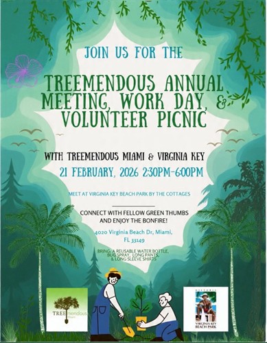 The picnic dinner and Annual Meeting will take place from 5:00–6:00 PM. TREEmendous Miami will provide the main food and refreshments, and guests are welcome (but not required) to bring a side dish or dessert to share. During the meeting, we’ll review highlights from the past year, share updates on our work, and hold the election of the upcoming Board of Directors.