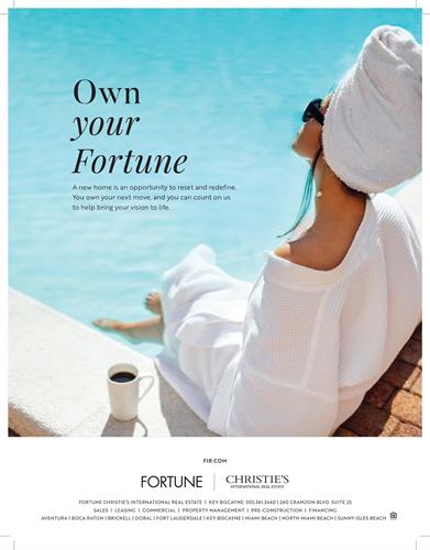 In 2022, Fortune joined forces with Christie’s International Real Estate, the world’s premier luxury real estate brand and network, as the brand’s exclusive affiliate in Miami-Dade and Broward counties adding enhanced global reach and luxury capabilities.